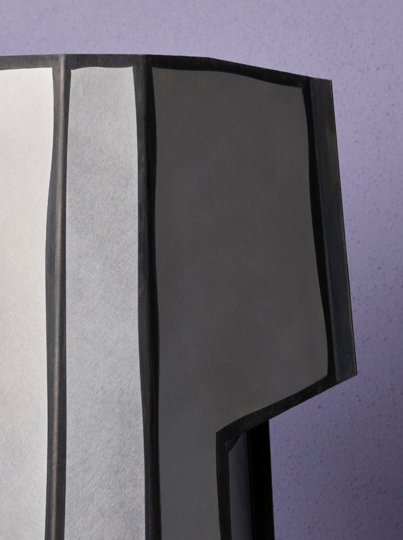The Hex Table Light is a continuation of an exploration of the interplay between straight and undulating lines, resulting in a visual play between straight and wiggly. Constructed from bend aluminum sheet, some parts are taped off and a black coating is applied.