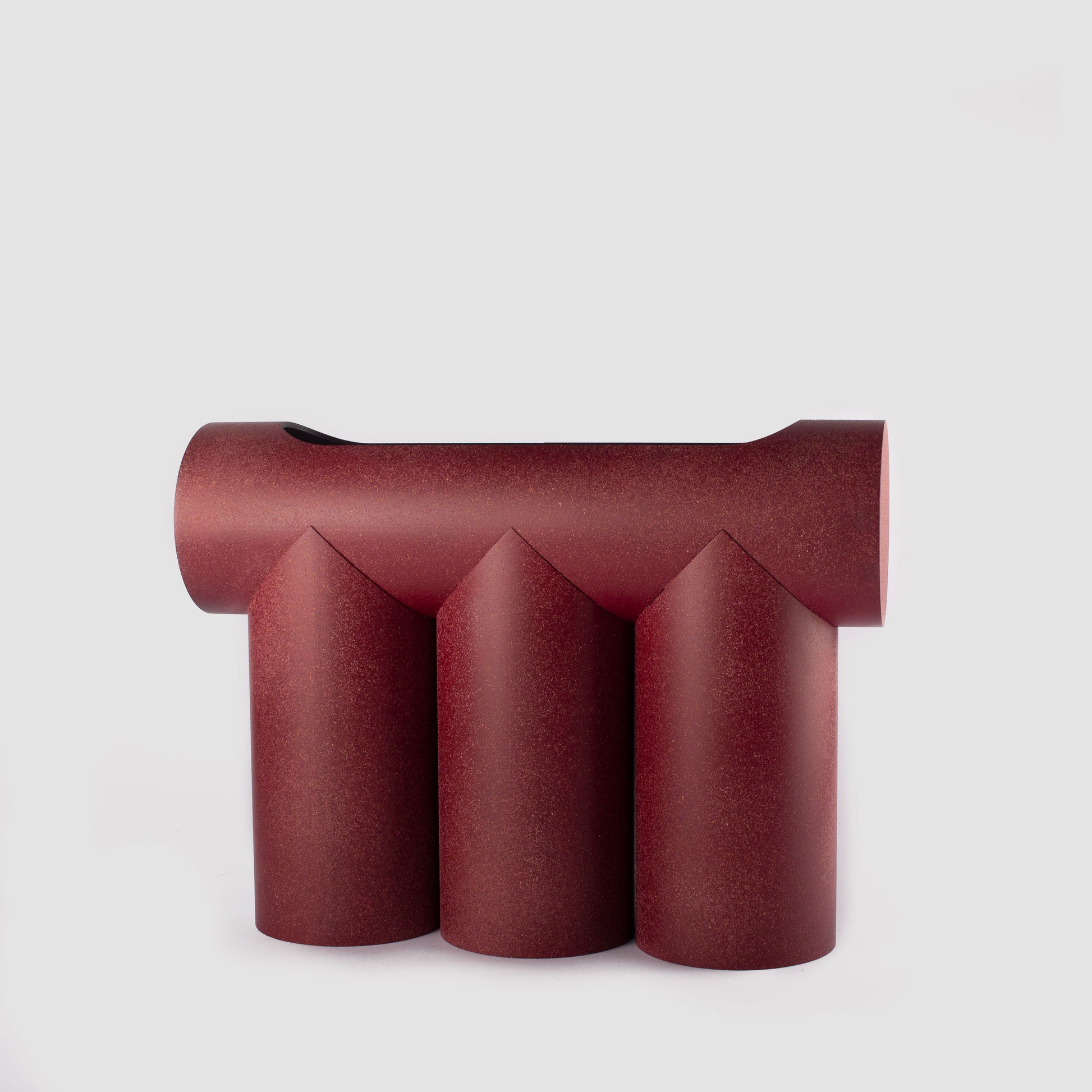 This vase is conceived by a susceptible play of intersecting cylindrical shapes.