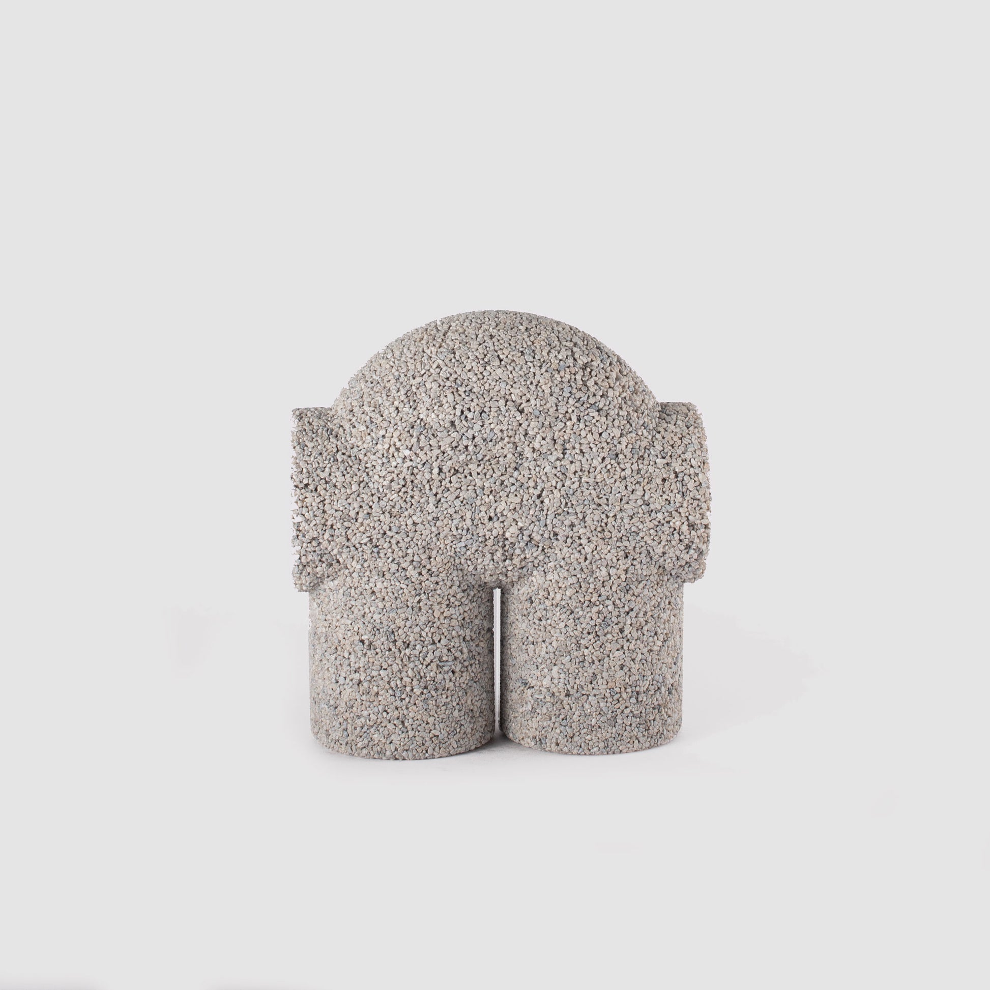 The sculpture is completely made from Quarts, the most abundant type of mineral on earth (12% of earths crust). It is basically the same stuff as beach sand but the grain is bigger. This was also actually the starting point, the abundance of "sand" or "minerals" and the possibility to create products with it.